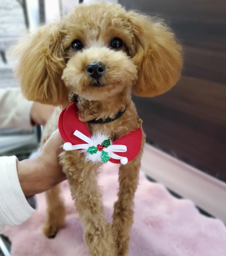 クリスマスチョーカーをイタズラせず着けられるようになって成長を感じました(*´ェ`*)🎄✨